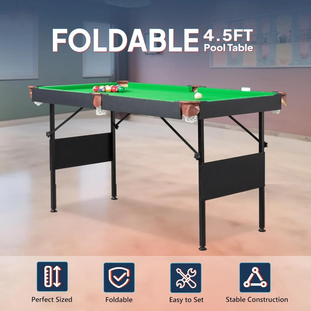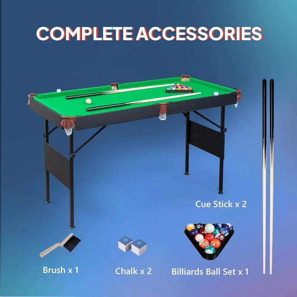 55" Portable Folding Pool Table, Pool Game Table with Cues, Ball, Rack, Brush, Chalk for Indoor & Outdoor