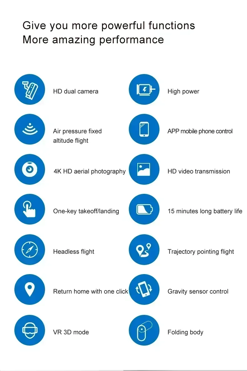 6.Headless mode(with camera can add functions: gesture photo, video, headless mode, emergency stop, trajectory flight, gravity sensing, automatic photo)
